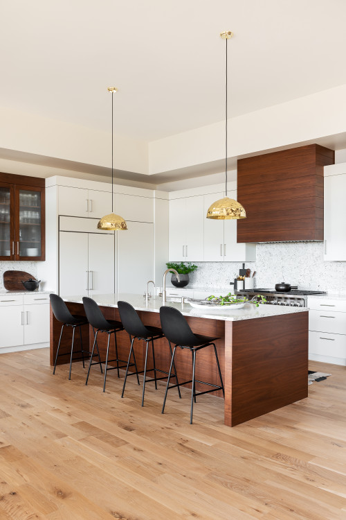 Wood finishes are trending, especially in kitchen islands, shelving, and cabinetry. Pair wood tones with matte black or brushed gold hardware for a modern twist.