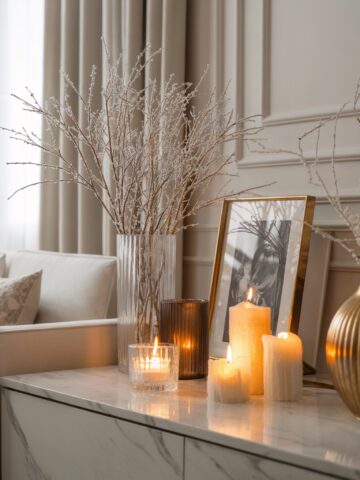 Add one or two cozy winter textures (knit throws, candles, soft lighting)